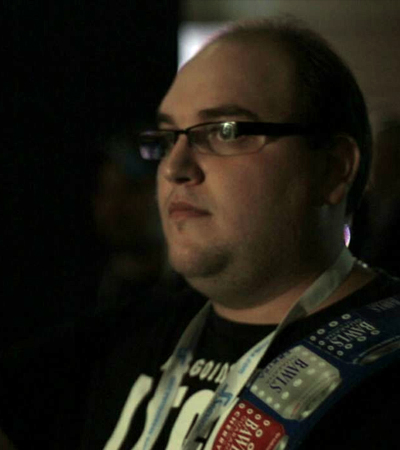 The returning champion was a man known simply by his gaming persona: KenCo12. He’s from Detroit, a big guy, with glasses and a goatee. Slung over his shoulder was a homemade championship belt: a weight-lifting belt painted blue and covered with promotional BAWLS stickers the company sent him. As a few competition regulars acknowledged him, he patted his blue status symbol and said to no one in particular, "Everyone’s gunning for the belt."